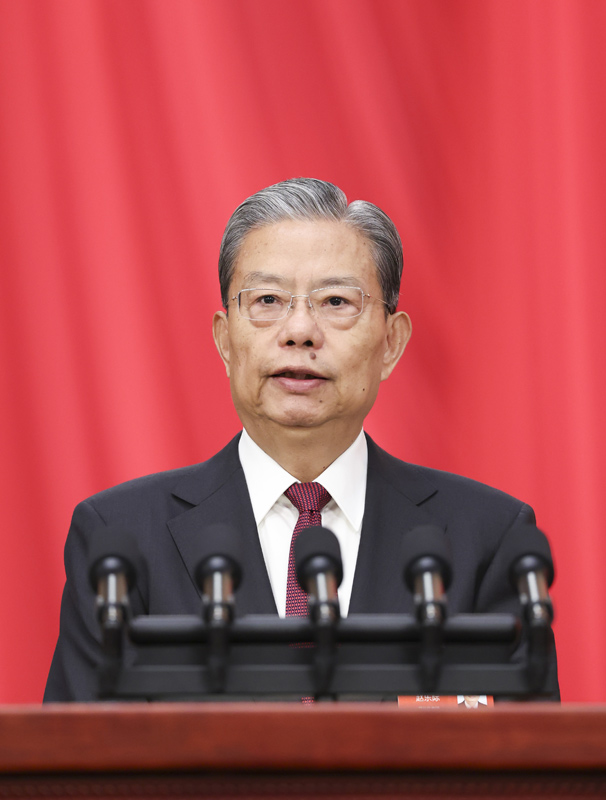 3月8日,全国人大常委会委员长赵乐际受全国人大常委会委托,向十四届全国人大三次会议作《全国人民代表大会常务委员会工作报告》。新华社记者 丁海涛 摄