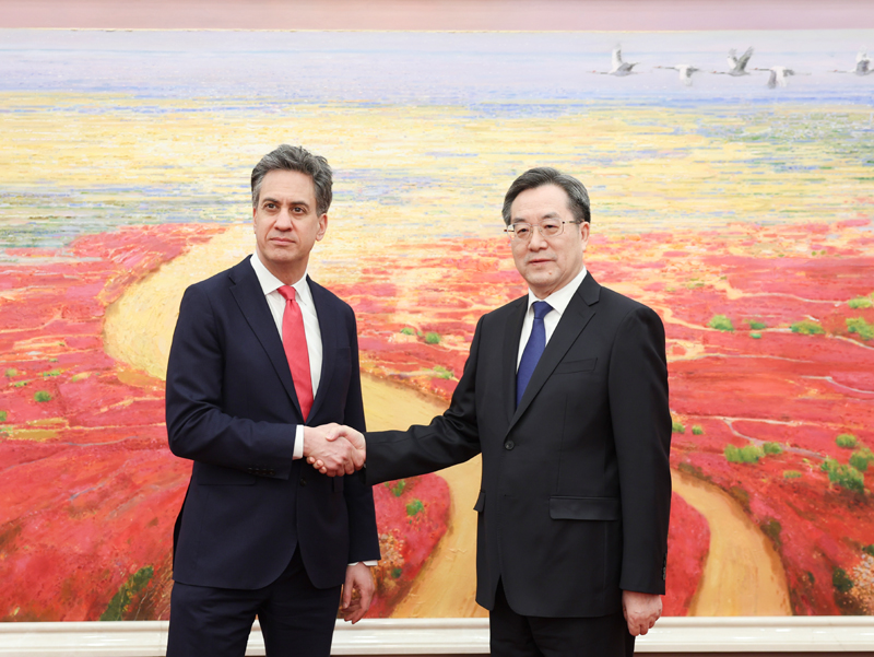 3月17日,中共中央政治局常委、国务院副总理丁薛祥在北京会见英国能源安全和净零排放大臣米利班德。新华社记者 丁海涛 摄