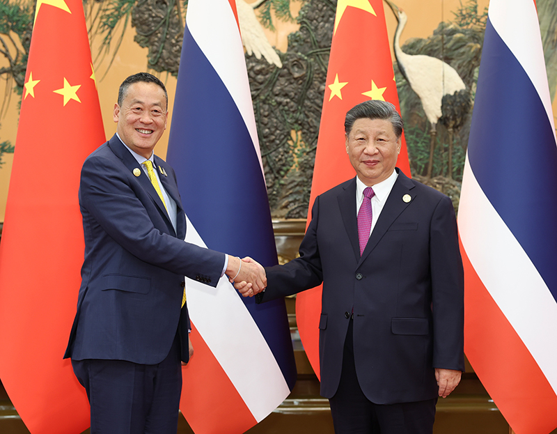 习近平强调,中方支持泰国走符合自身国情的发展道路,双方要继续在涉及彼此核心利益和重大关切问题上相互给予坚定支持。中泰要做高质量共建“一带一路”的排头兵,加快中泰铁路建设,拓展数字经济、绿色发展、新能源等领域合作,扩大人文交流。双方要加大打击电信诈骗、网络赌博等跨境犯罪,为两国发展营造安全环境。中方愿同泰方加强在东盟、澜湄合作、联合国等多边框架内合作,分享中国大市场和高水平对外开放机遇,为亚洲发展注入正能量,为推进全球治理变革作出积极贡献。