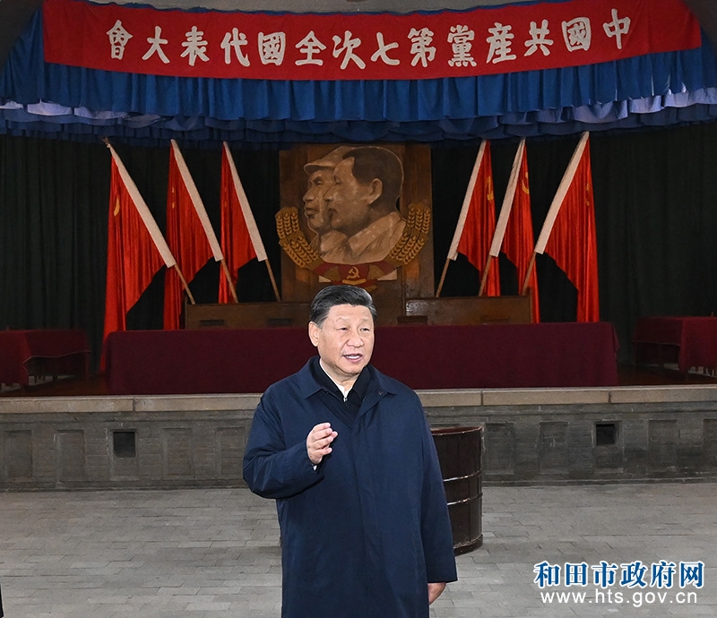27日上午,习近平等集体乘车,来到位于延安城西北的杨家岭革命旧址。1938年11月,中共中央机关由凤凰山迁到杨家岭。在杨家岭期间,我们党召开了第七次全国代表大会,开展了延安整风运动,领导了中国人民抗日战争。