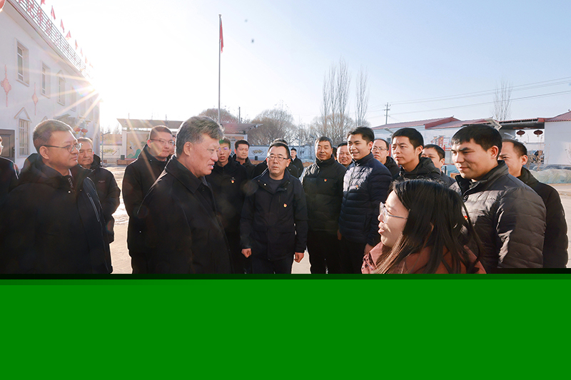 1月11日,自治区党委书记马兴瑞在喀什地区英吉沙县色提力乡帕其英也尔村,同自治区党委办公厅驻村工作队干部亲切交流。石榴云/新疆日报记者 崔志坚 摄