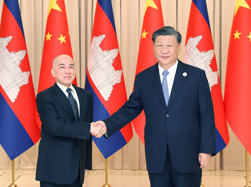 习近平指出,今年是中柬建交65周年和中柬友好年。我同西哈莫尼国王两次会面,体现了中柬亲如一家的深厚情谊。前不久,我在北京会见洪玛奈首相,就传承世代友好、深化全面战略合作达成重要共识。中方珍视同柬埔寨王室的特殊友谊,高度重视中柬关系发展,愿同柬方一道,推动中柬命运共同体建设走深走实。